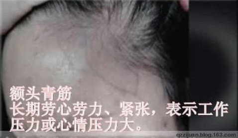 2.額頭有青筋,提示長期勞心勞力,緊張,工作壓力或心情壓力大。