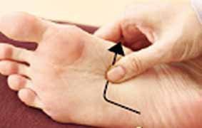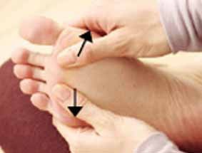 4、用雙手扶著腳掌上半部分的內外兩側,拇指從中央向兩側清冊,調整呼吸系統,對抗肩部硬塊。