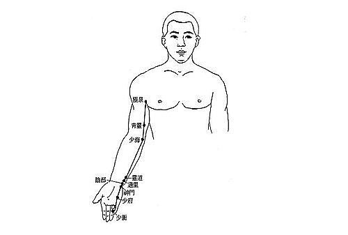 【定位】肱二頭肌橈側緣,腋前紋頭下4寸;或肘橫紋上5寸處;天府穴下1寸