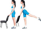 8、預防腰痛操:雙手抓住椅背,單腳後踢,左右腳輪換,反復幾十次,可以很好地鍛煉腰部,避免受腰椎疾病的困繞如果想鍛煉軀幹,就站直後雙手抓住椅背,身體挺直,仰頭看天花板,保持望月似的動作。這個時候,身體呈反向彎曲,對脊椎是很好的保健,對頸椎更能起到鍛煉的作用。
