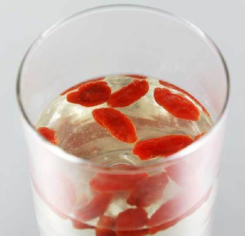 取枸杞30-40粒,泡於茶中,碧茶紅果,色香俱佳,清香醇和,生津止渴,堅持飲用,益肝補腎。